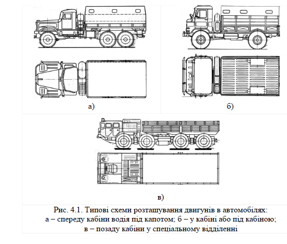 Від прямокутної конфігурації вантажного відсіку відрізняється передня частина автомобіля, що має звичайно більш заокруглені обриси моторного відділення та кабіни водія.