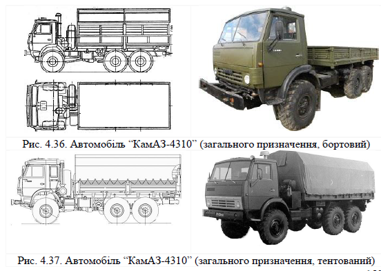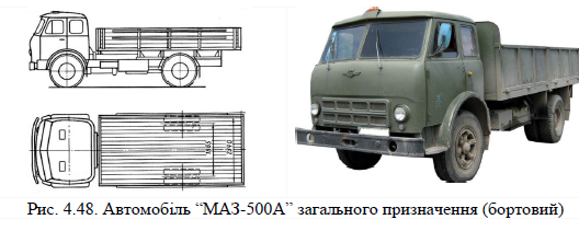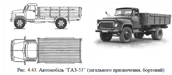 Вантажні автомобілі загального призначення відрізняється розташуванням позаду кабіни водія рівної вантажної платформи прямокутної форми без бортів або з бортами.