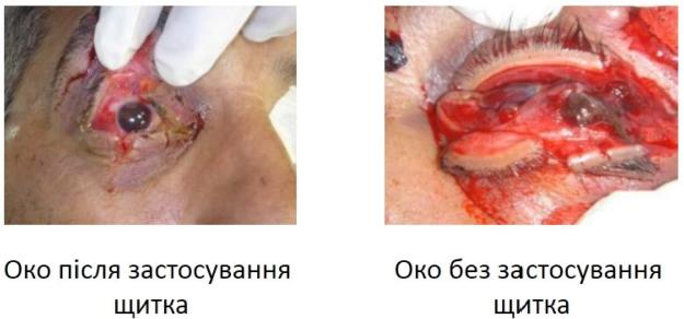 h. Травма очей не є причиною відмовлятись від використання кетаміну. Ризик додаткового пошкодження очей внаслідок застосування кетаміну низький і не перевищує позитивний ефект знеболення для виживання, якщо поранений в стані шоку або в нього ж дихальна недостатність, або високий ризик розвитку цих станів