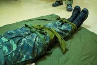 Рисунок 10 – іммобілізація нижньої кінцівки при переломі стегна за допомогою підручних засобів.