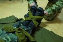 Іммобілізації нижньої кінцівки за допомогою шини Kendrick здійснюється трьома особами (санітарний інструктор і 2 помічника).