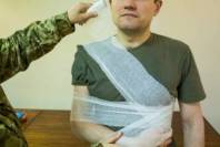 При огляді слід визначити загальний стан потерпілого, в разі потреби – провести реанімаційні заходи: зупинити кровотечу і відновити прохідність дихальних шляхів. З метою попередження розвитку шоку та зменшення відчуття болю необхідно ввести потерпілому знеболююче.