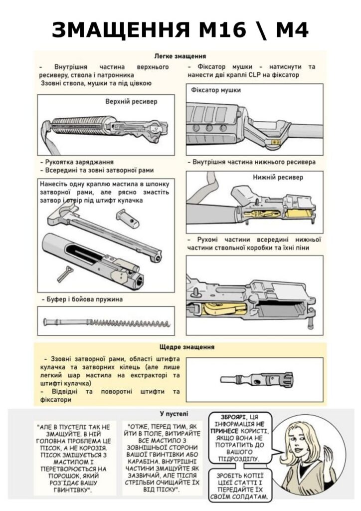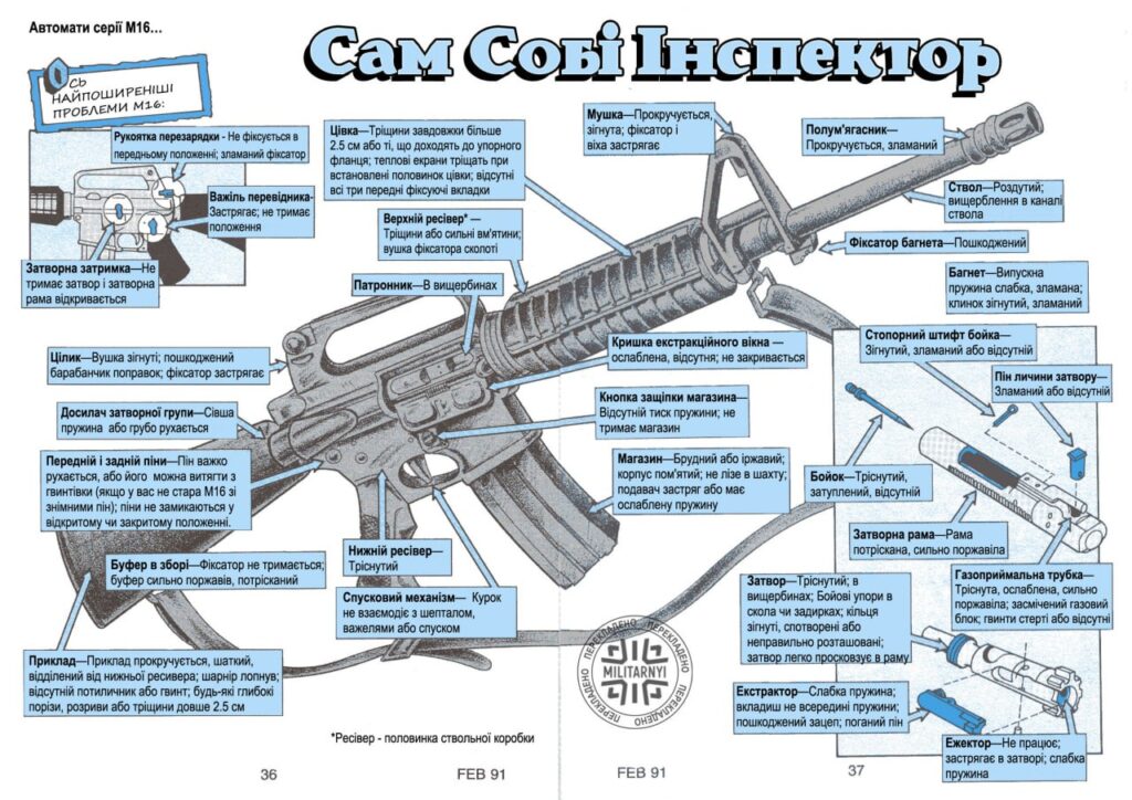 Ця добірка присвячена повному обслуговуванню гвинтівки M16. Як оглянути, розібрати, почистити й змастити вашу зброю. Та які проблемні місця можуть бути при її використанні.