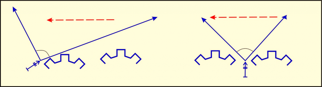 місця, де змінюється місцевість або є в наявності важкодоступні лінійні перешкоди, наприклад кромка лісу, горна гряда, яр і тощо;