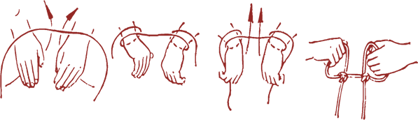передпліччя накладені одне на інше, мотузка може бути пропущена через шию;