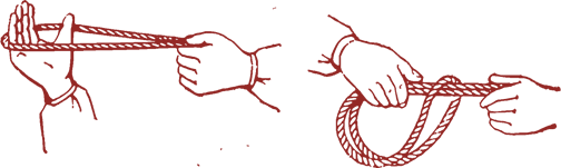 Для зв’язування противника брючним ременем застосовується петля що не розтягується, мотузкою – петля накидом або подвійна петля що затягується (рис.10).