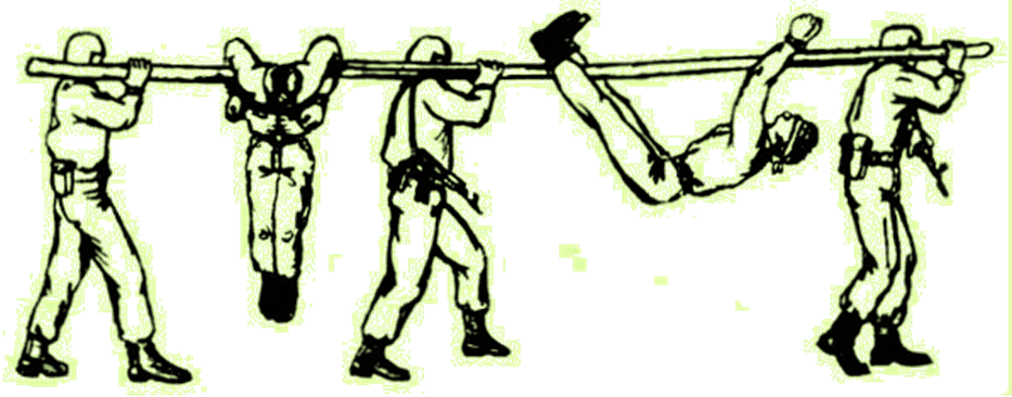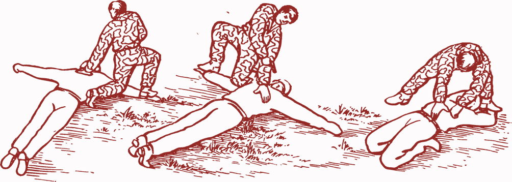 Щоб позбавити полоненого рухливості, потрібно покласти його обличчям вниз, ноги, зігнуті в колінах, підігнути і схрестити, руки завести за спину і зв’язати праву руку з лівою ногою, ліву руку з правою ногою.