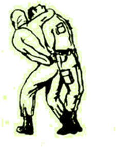 Рисунок 8 – спосіб захоплення полоненого. Момент накидання на голову плащ-палатки, захоплення горла і утримання (звалювання) до втрати свідомості.