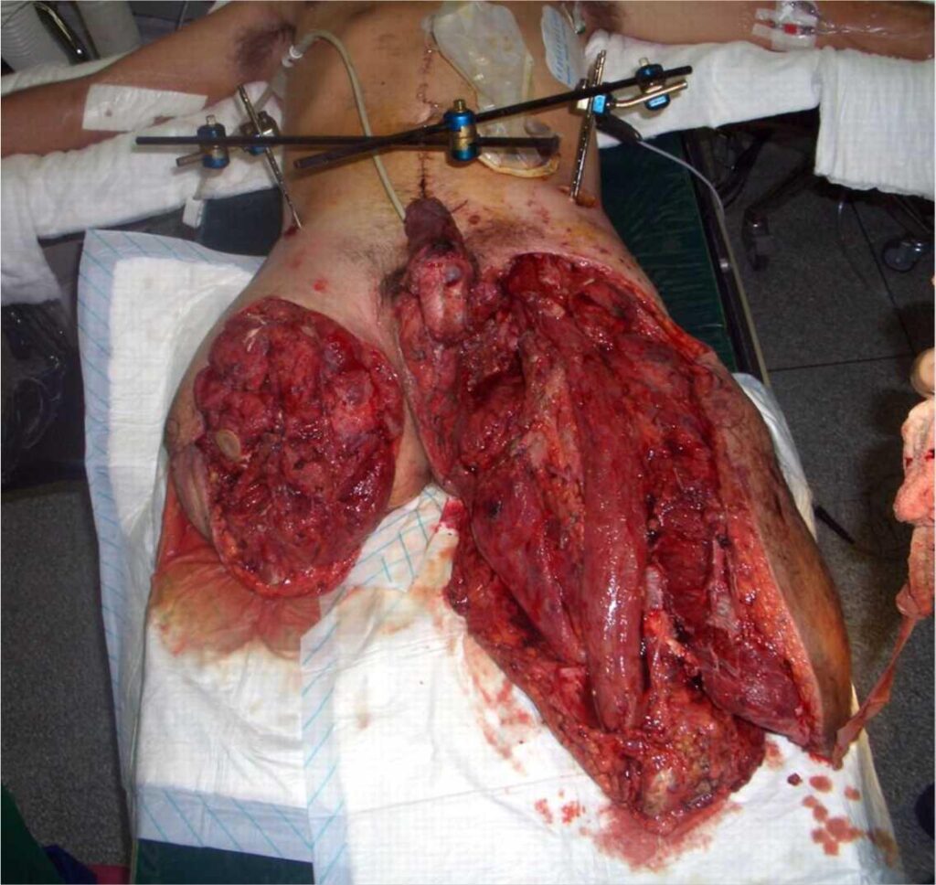 - Кровотеча з ділянок, де кінцівки сполучаються з тулубом, наприклад, в паховій області, після високої травматичної ампутації
