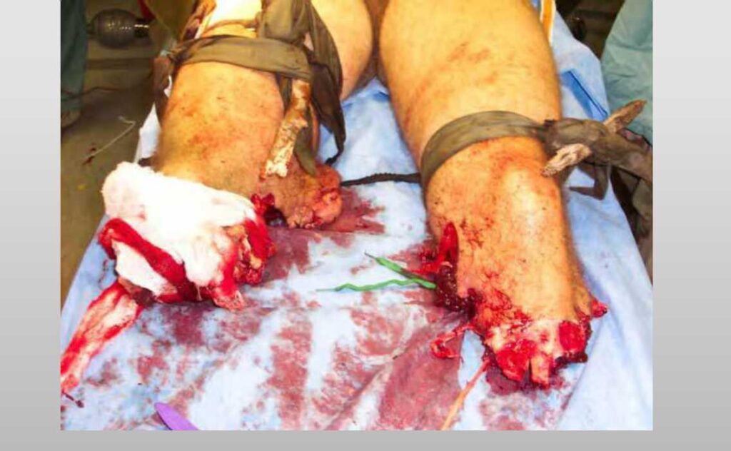 Цей тип ран найчастіше спричинений “розтяжками” (саморобними вибуховими пристроями)